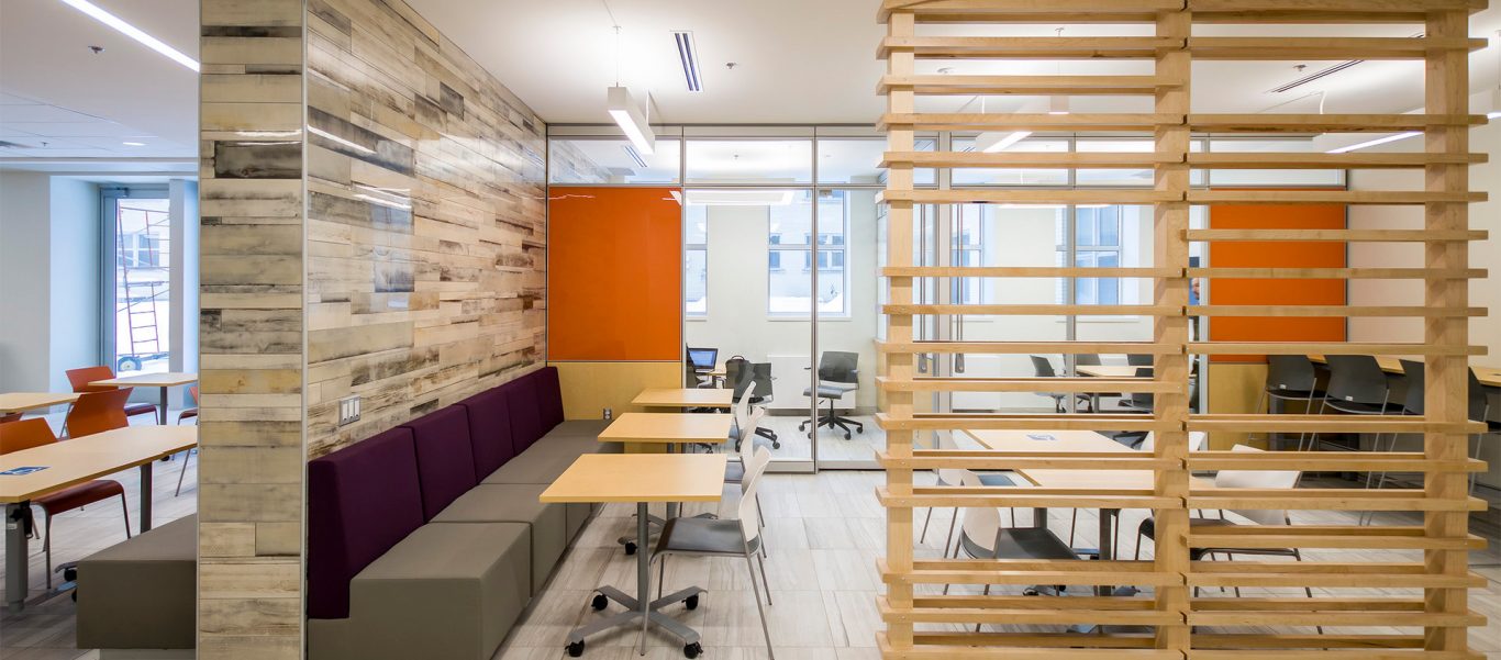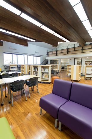 Inside, we strive to create spaces that are bathed in natural light, to provide views to the outdoor landscape where appropriate, to add design elements that stimulate learning, and to design circulation spaces that promote encounters and social interaction while observing CPTED principles for safety and security.
