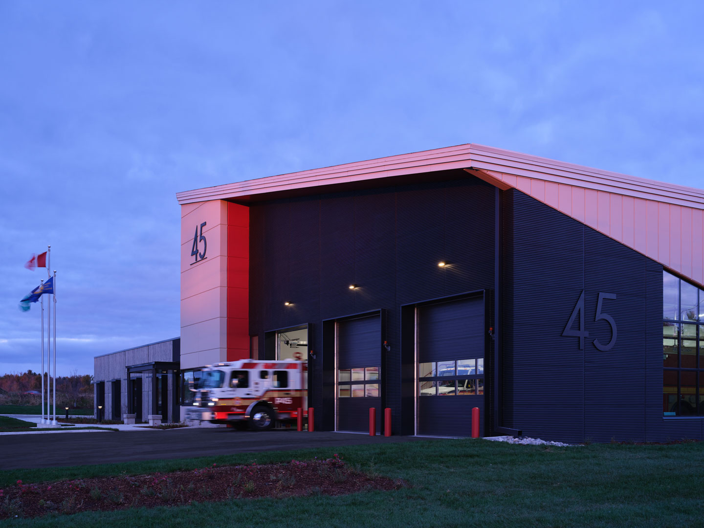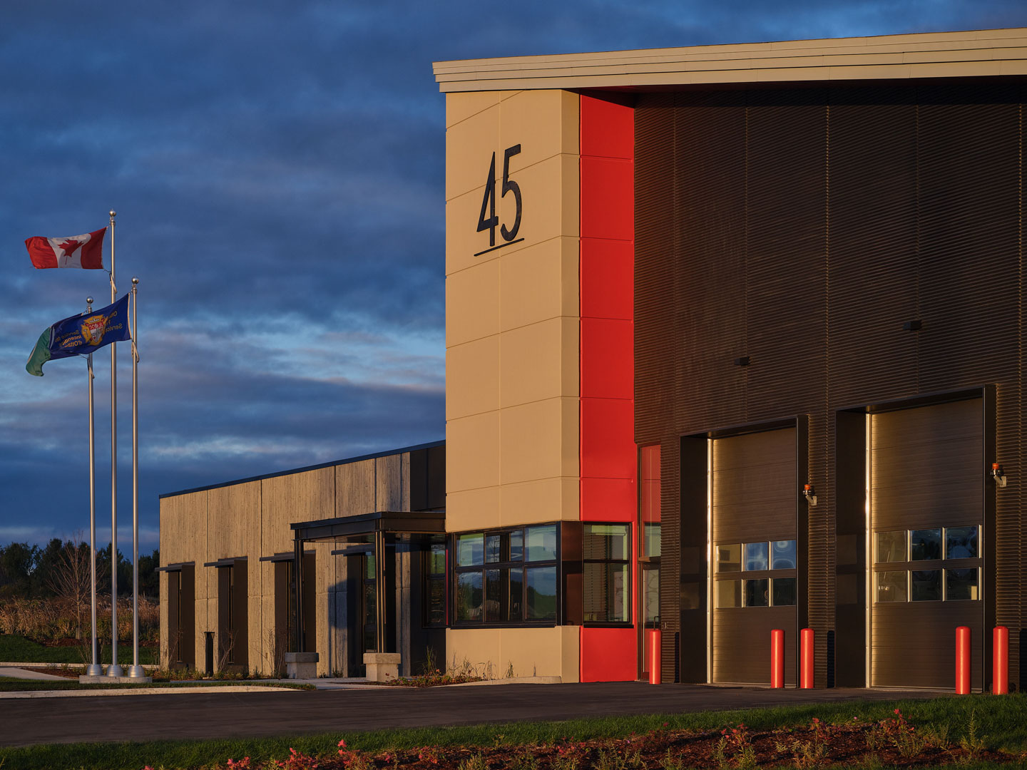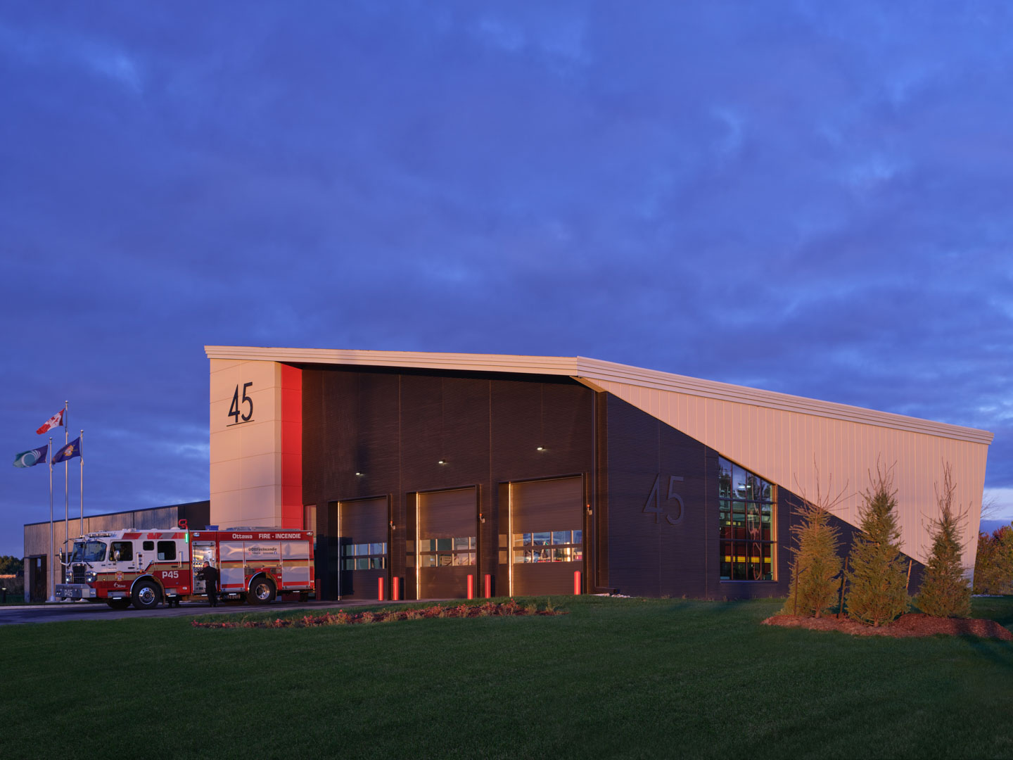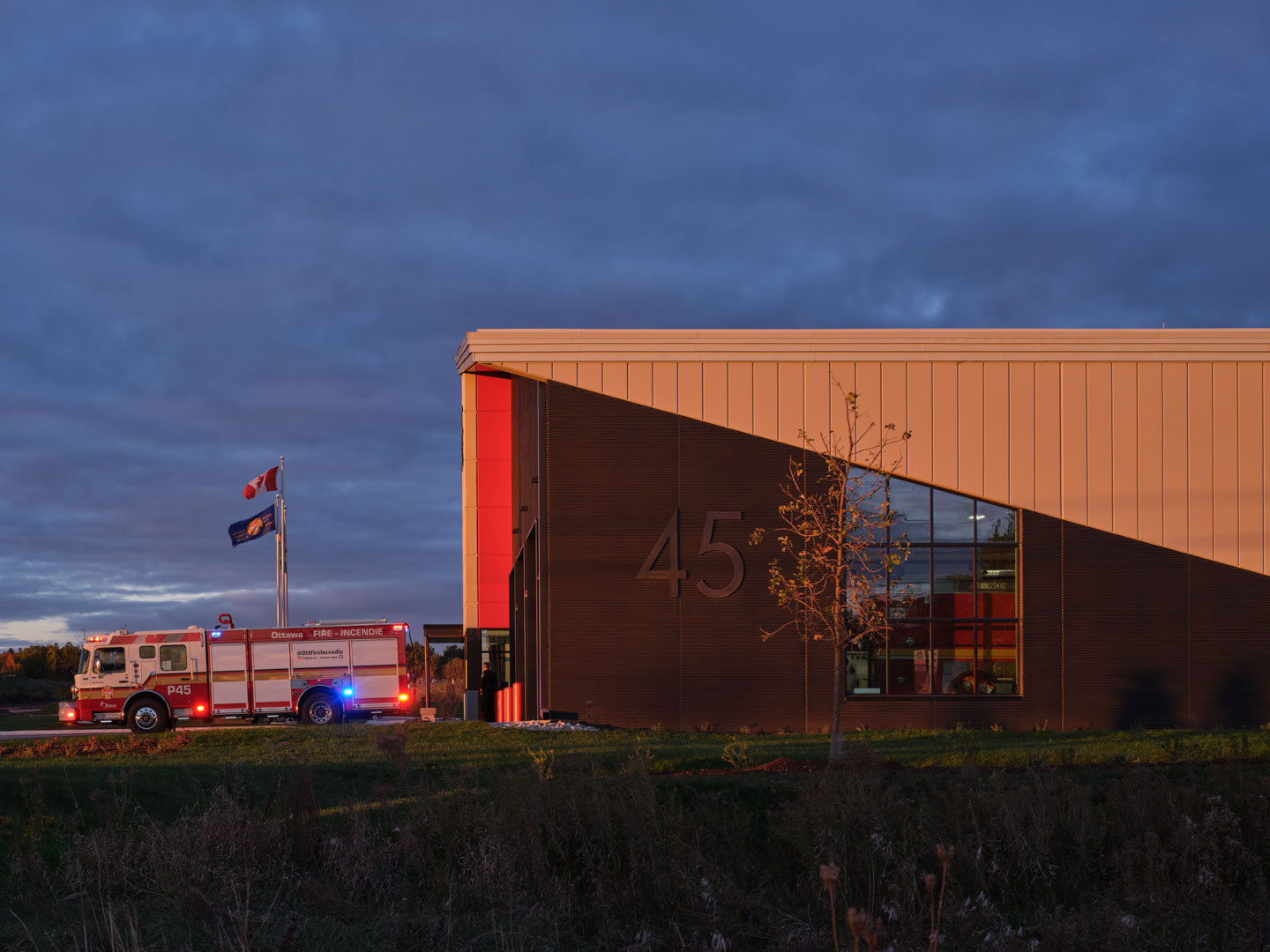 Following the success of stations 36 and 55, the Hobin Architecture/Morley Hoppner design-build team was retained by the City of Ottawa for this new 3-bay station to serve the growing suburban community of Kanata North.